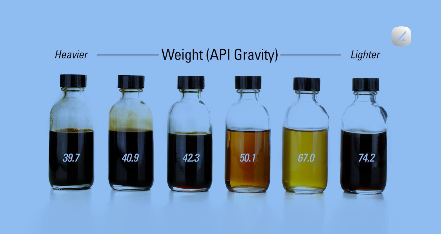 مهمترین معیار برای اندازهگیری چگالی نفت خام، درجه گرانش API (American Petroleum Institute) است. این مقیاس، که توسط مؤسسه نفت آمریکا توسعه یافته، رابطهای معکوس با چگالی دارد؛ به این معنی که هرچه عدد API بالاتر باشد، نفت خام سبکتر و هرچه این عدد پایینتر باشد، نفت سنگینتر است. به طور کلی، نفت خام سبک دارای درجه API بالای ۳۱.۱ است، در حالی که نفت خام سنگین درجه API کمتر از ۲۲.۳ دارد. نفتهایی که درجه API آنها بین ۲۲.۳ تا ۳۱.۱ باشد، به عنوان نفت خام متوسط طبقهبندی میشوند. این معیار، به دلیل تأثیر مستقیم بر بازده پالایش، نقش اصلی را در قیمتگذاری نفت خام در بازار جهانی ایفا میکند. پالایشگاهها معمولاً نفت خام سبک را ترجیح میدهند زیرا با استفاده از تجهیزات سادهتر میتوانند محصولات با ارزش بالاتری مانند بنزین، دیزل و نفت سفید را از آن استخراج کنند.