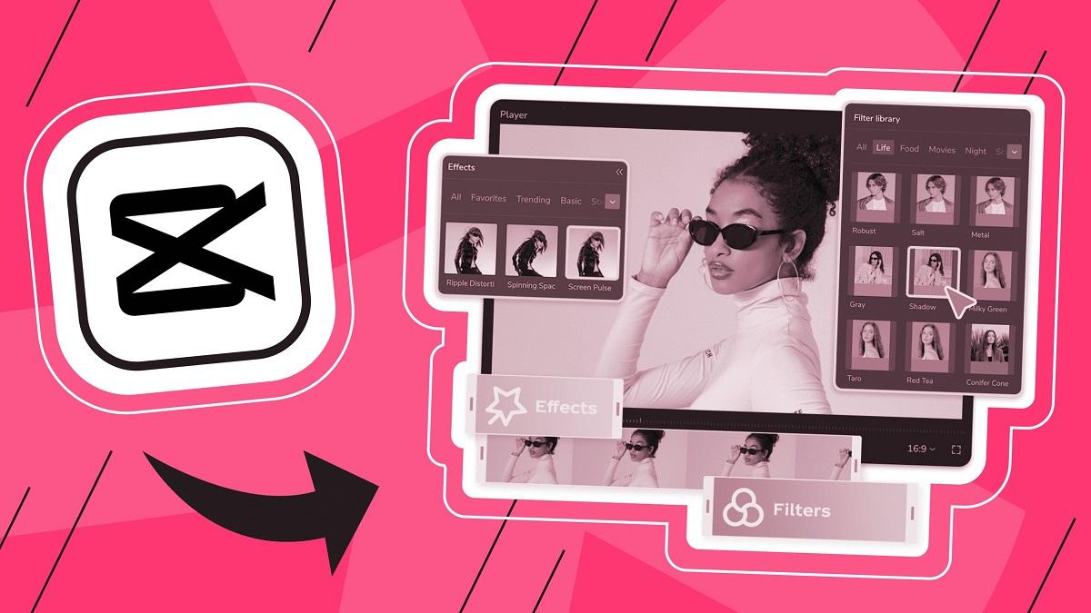 فیلترها و افکتها: کاربران به مجموعهای از فیلترهای رنگی و افکتهای بصری دسترسی دارند که میتوانند حال و هوای کلی ویدیو را تغییر دهند. این افکتها شامل افکتهای نورپردازی، افکتهای تصویری قدیمی و افکتهای مدرن مانند Glitch و RGB میشوند.