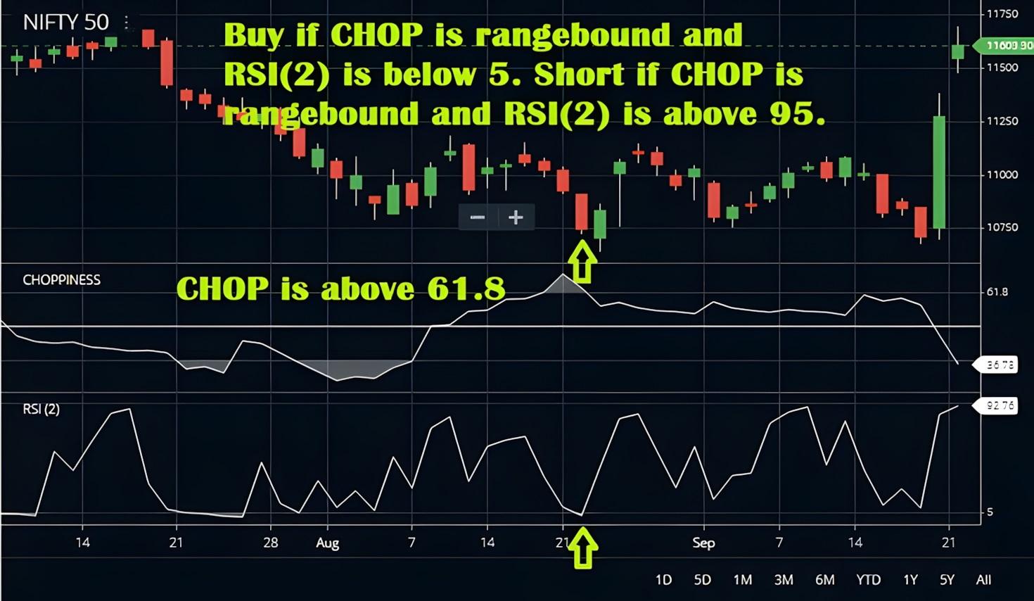 قدرت واقعی اندیکاتور شاخص خردشدگی زمانی آشکار میشود که در ترکیب با اندیکاتورهای جهتدهنده (مانند ADX یا میانگین متحرک) استفاده شود تا تصمیمات معاملاتی به صورت سهگانه تأیید شوند.