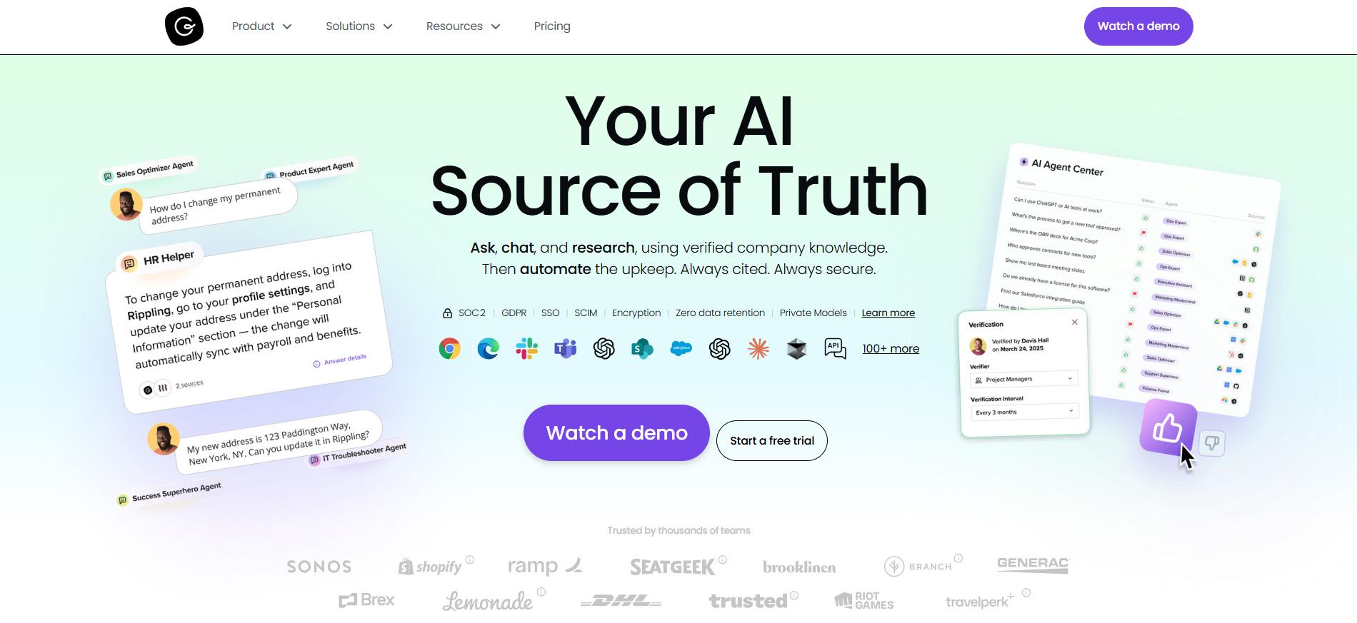 Guru به خوبی با ابزارهای مختلفی که تیمها روزانه استفاده میکنند، مانند Slack، Microsoft Teams، Salesforce، Zendesk و بسیاری دیگر، ادغام میشود. این قابلیت به این معنی است که کاربران میتوانند مستقیماً از طریق ابزارهایی که قبلاً استفاده میکردند، به دانش Guru دسترسی پیدا کنند، بدون اینکه نیاز باشد از محیط کاری خود خارج شوند. این ادغام، جریان کار را روانتر میکند.