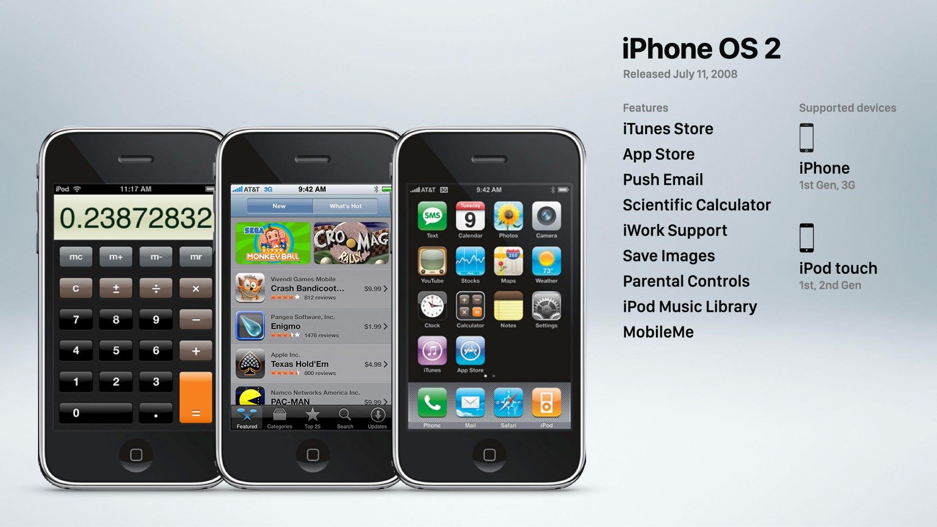 مهمترین و تأثیرگذارترین قابلیت iPhone OS 2 که نام آن را در تاریخ تکنولوژی جاودانه کرد، معرفی App Store بود. اما تغییرات به همین جا محدود نشدند؛ این نسخه همچنین بهبودهای حیاتی در کاربری روزمره و قابلیتهای سازمانی را به ارمغان آورد.