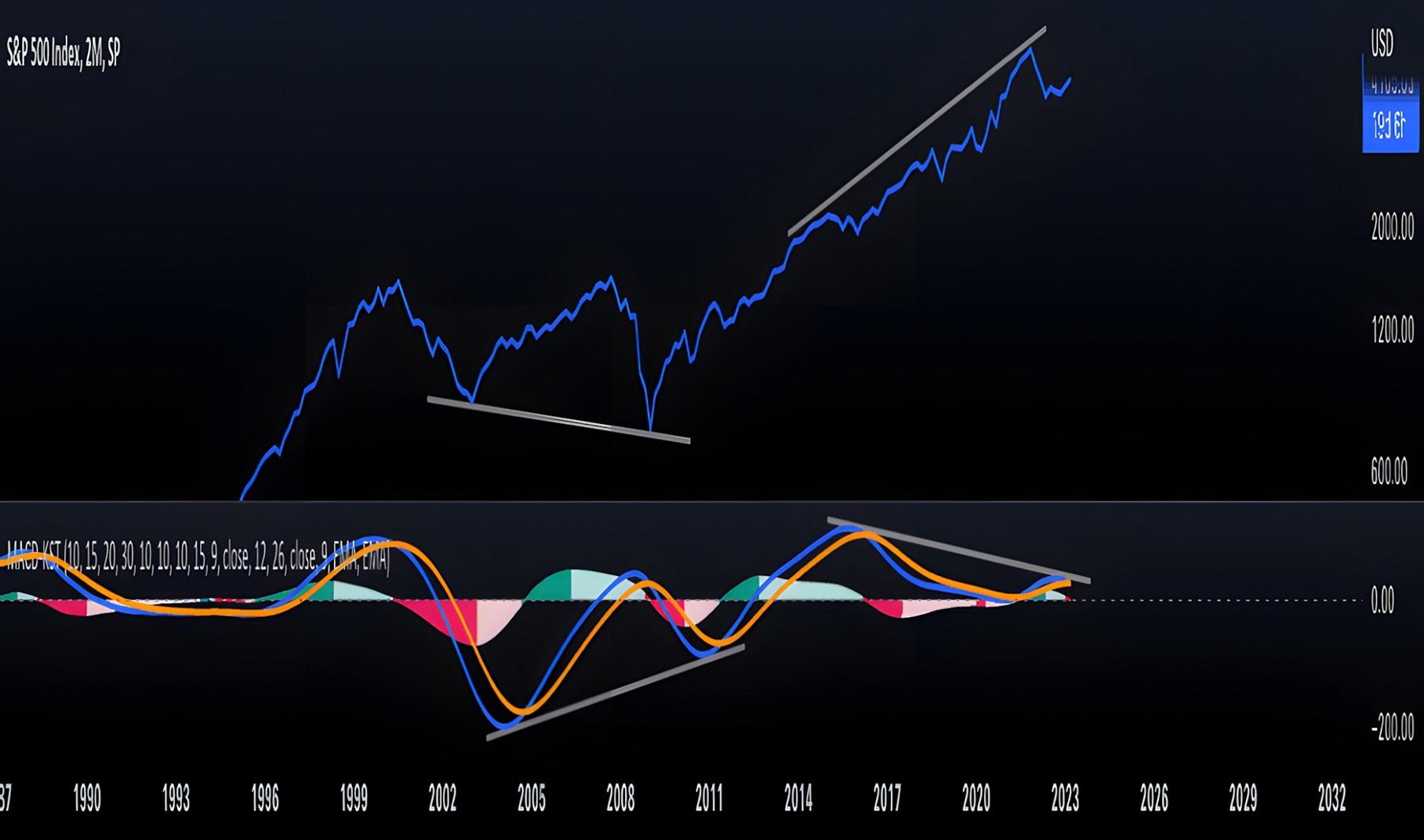 قدرت واقعی اندیکاتور KST در تشخیص واگرایی (Divergence) نهفته است، به خصوص به دلیل اینکه این اندیکاتور ترکیبی از چندین شتاب را اندازهگیری میکند.