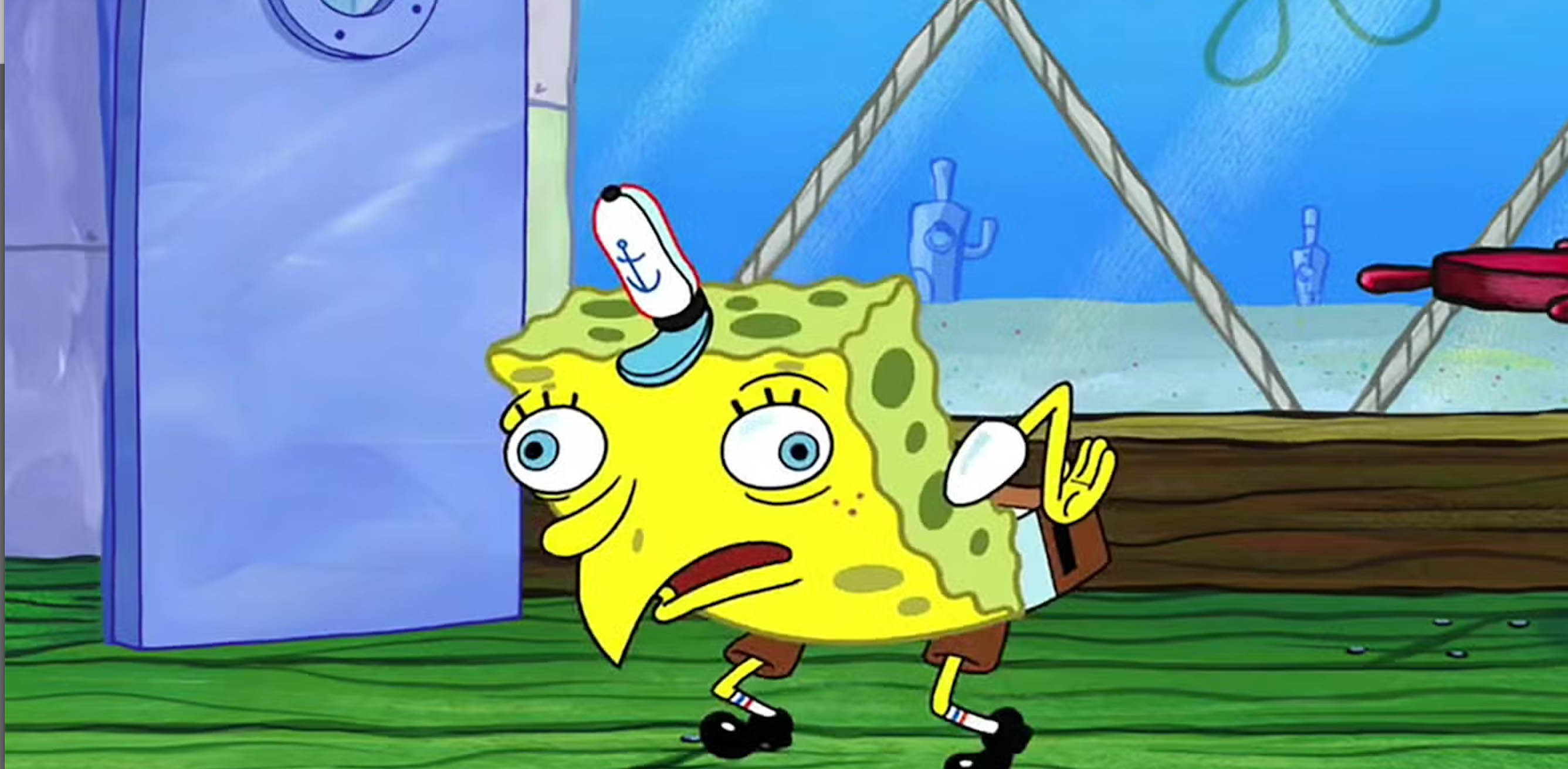 این میم که تصویر معروف شخصیت اسفنجی باب است، وقتی در حال تقلید از دیگران است، بهعنوان نمادی از تمسخر و مسخره کردن استفاده میشود. نسخه NFT این میم در سال ۲۰۲۱ با قیمت ۲۵ اتریوم فروخته شد.