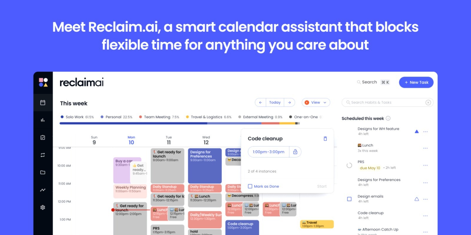 معرفی هوش مصنوعی ریکلیم (Reclaim)؛ خداحافظی با هرجومرج در تقویم کاری