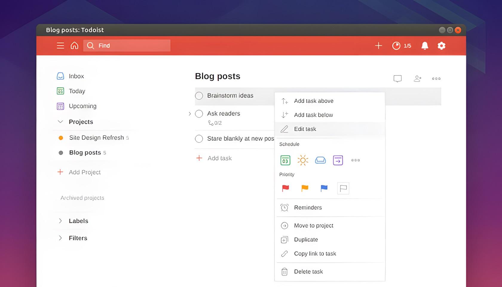 پلتفرم Todoist سه نمای اصلی برای سازماندهی دارد.