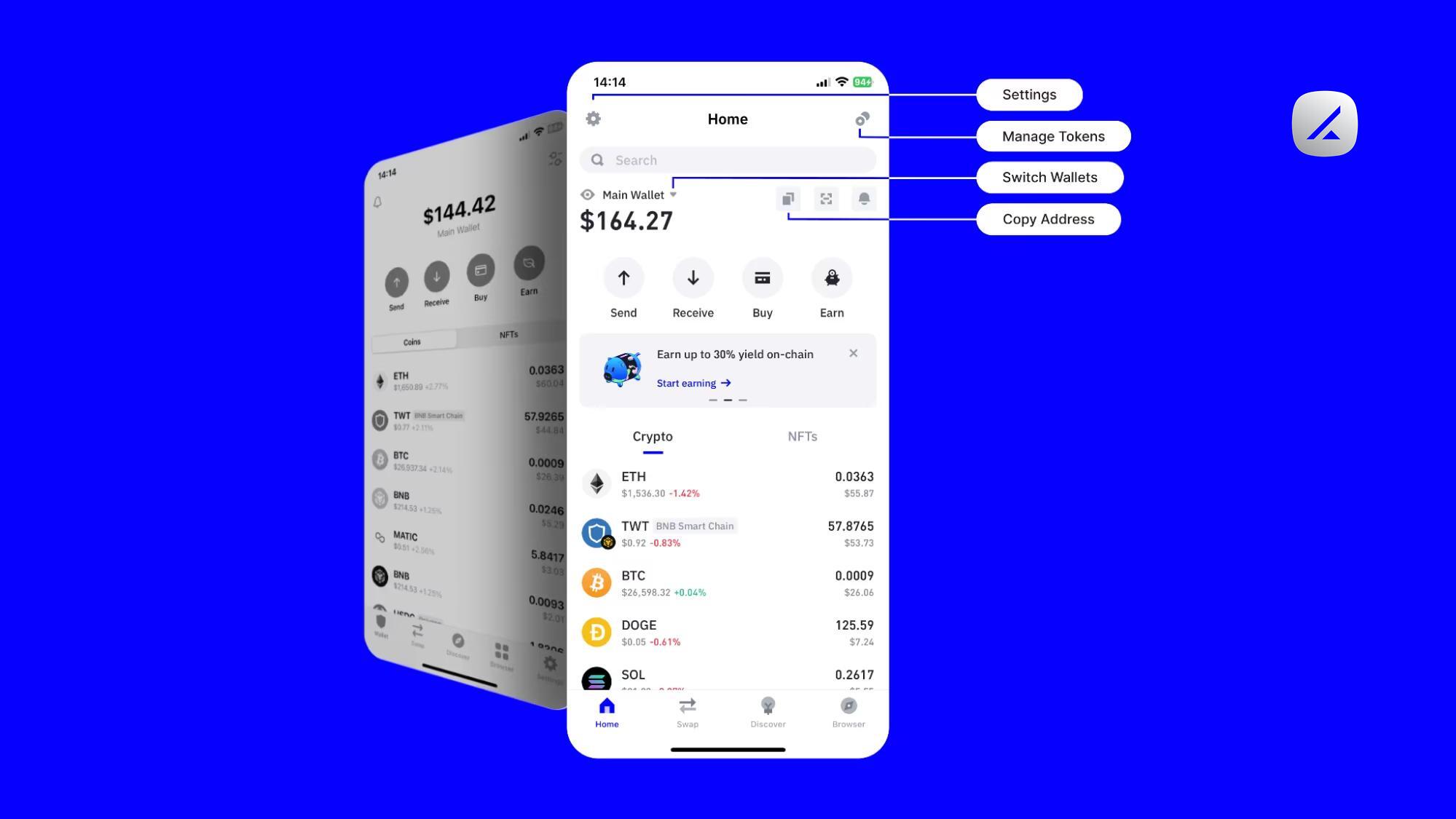 این مرورگر داخلی به کاربران اجازه میدهد تا به هزاران برنامه غیرمتمرکز در شبکههای مختلف بلاکچین دسترسی داشته باشند. از پروتکلهای وامدهی و وامگیری در حوزه DeFi گرفته تا پلتفرمهای بازی و بازارهای NFT، کاربران میتوانند به راحتی با آنها تعامل داشته باشند.