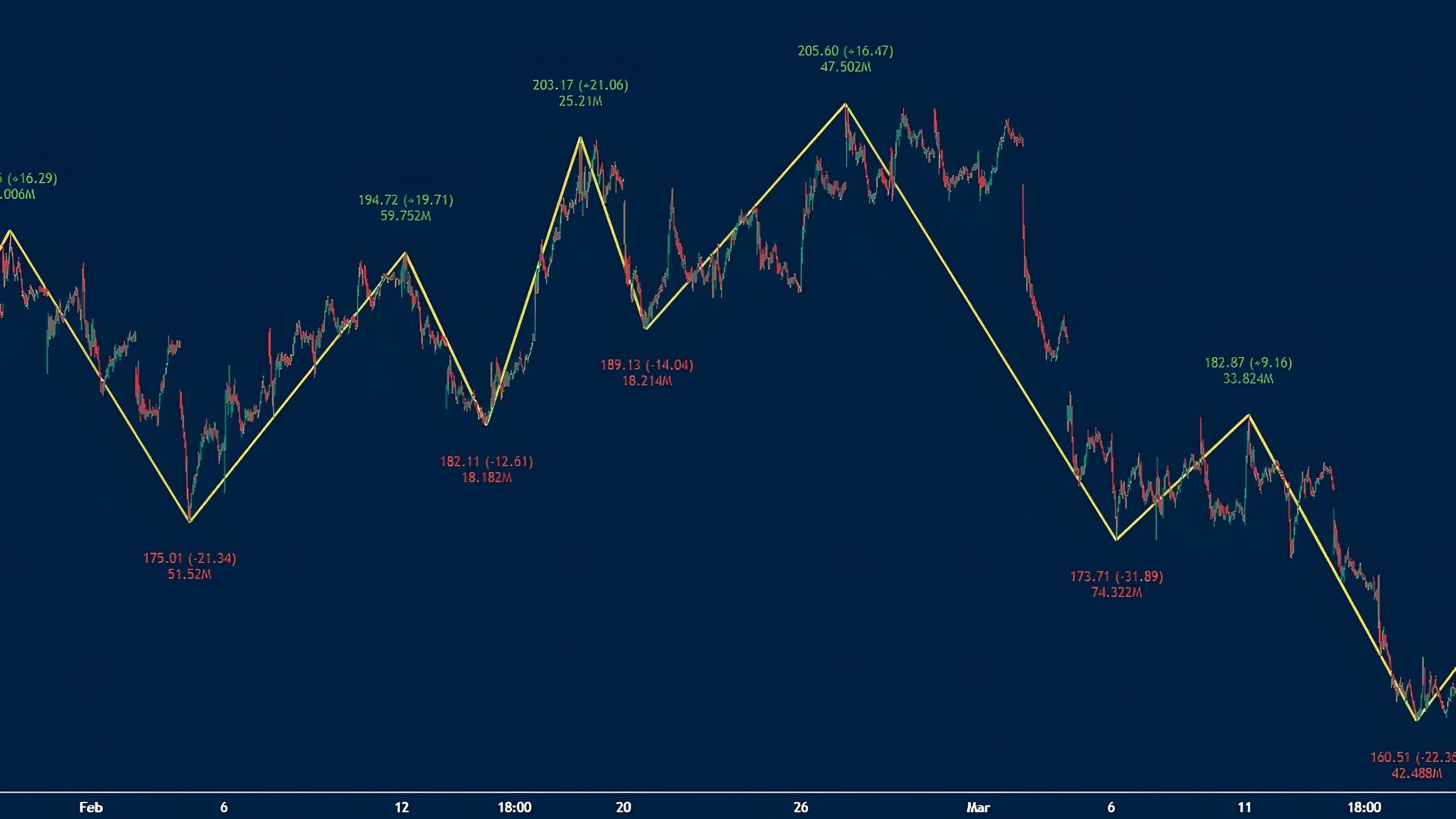 اندیکاتور زیگزاگ یک ابزار ساده اما قدرتمند است که بر روی نمودار قیمت ترسیم میشود و تنها سقفها و کفهایی را به هم متصل میکند که اختلاف قیمتی آنها از یک مقدار آستانه مشخص فراتر رود. فهم منطق محاسباتی این اندیکاتور برای استفاده مؤثر از آن بسیار مهم است.